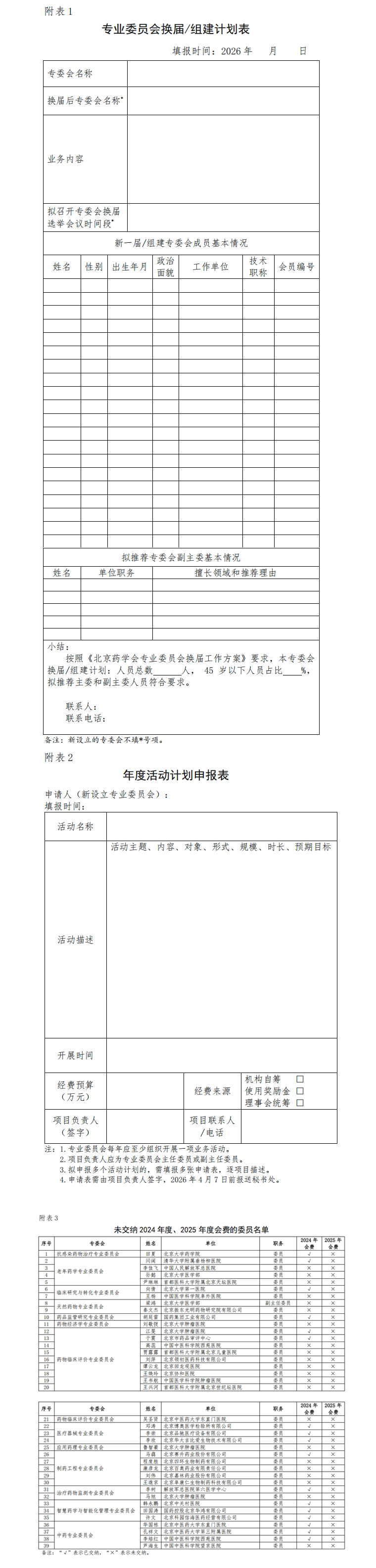 1号文-附表1 专业委员会换届、组建计划表