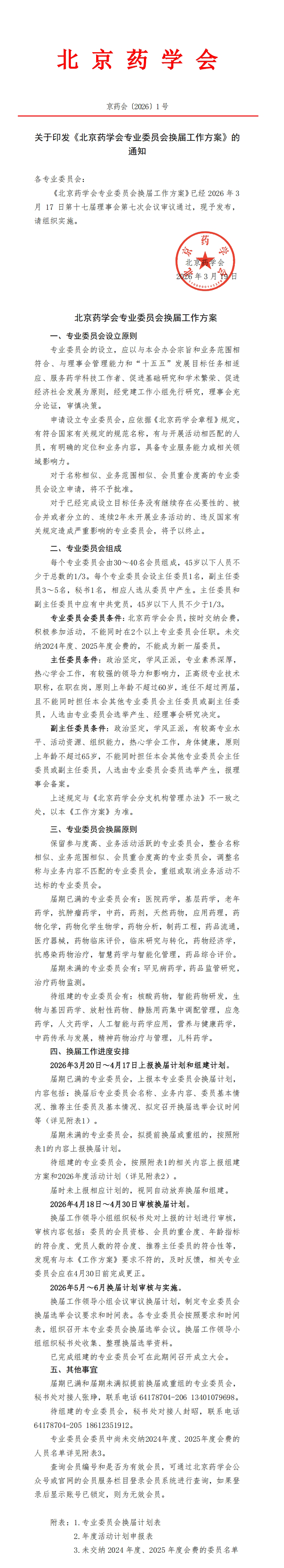 1号文-关于北京药学会专业委员会换届工作的通知